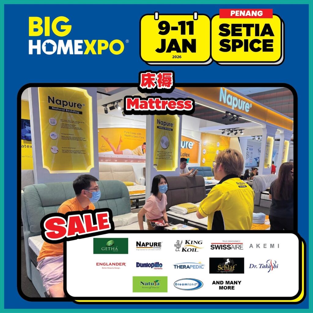 BIG HOME Expo 2026 brings together Malaysia’s top mattress brands from 9-11 January at Setia SPICE, Penang, featuring exclusive sales and promotions.