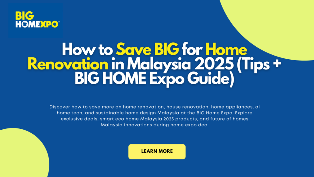 Planning a home renovation in Malaysia in 2025 can be overwhelming due to rising material and labour costs. Homeowners often delay their projects while looking for the best deals on home appliances, furniture, and renovation services. The BIG HOME Expo, provides a one-stop solution to explore exclusive offers, smart eco home Malaysia 2025 solutions, ai home tech, and sustainable home design Malaysia products. With proper planning, visitors can save significantly while upgrading their home for the future of homes Malaysia.By visiting during home expo dec, you can access promotions, see products firsthand, and plan a smarter renovation while saving significantly for the future of homes Malaysia.